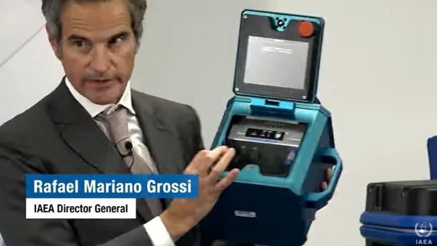 گروسی: آمریکایی‌ها با توافق کرج مخالفت نکردند گروسی در این نشست خبری نوع دوربین‌های نظارتی نصب‌شده آژانس اتمی در تأسیسات هسته‌ای سراسر جهان را به خبرنگاران نشان داد.