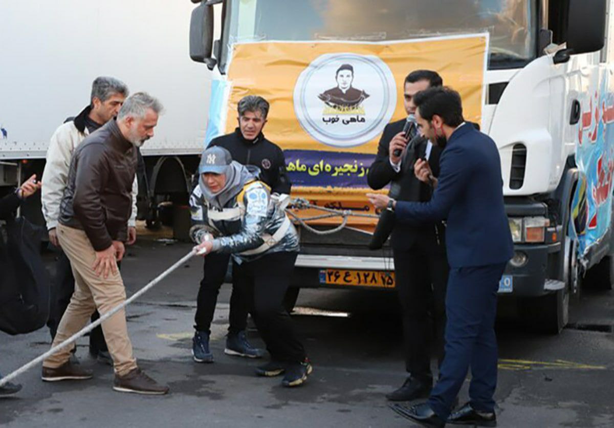 همزمان با طولانی ترین شب سال، گیتی موسوی، بانوی ورزشکار تبریزی بار دیگر رکورد جهانی کشیدن تریلی را شکست.